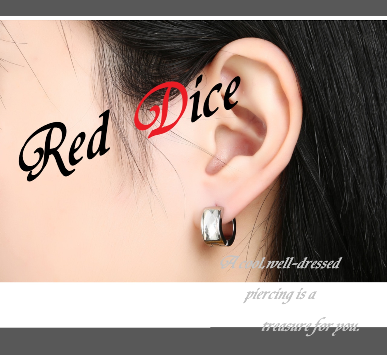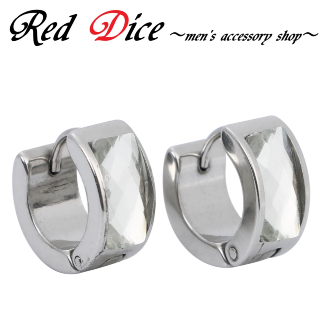 ブラックにストーンの輝きが力強さと男らしさを際立たせる 人気 両耳用 リング ピアス メンズ 幅広ブラック (Gray)